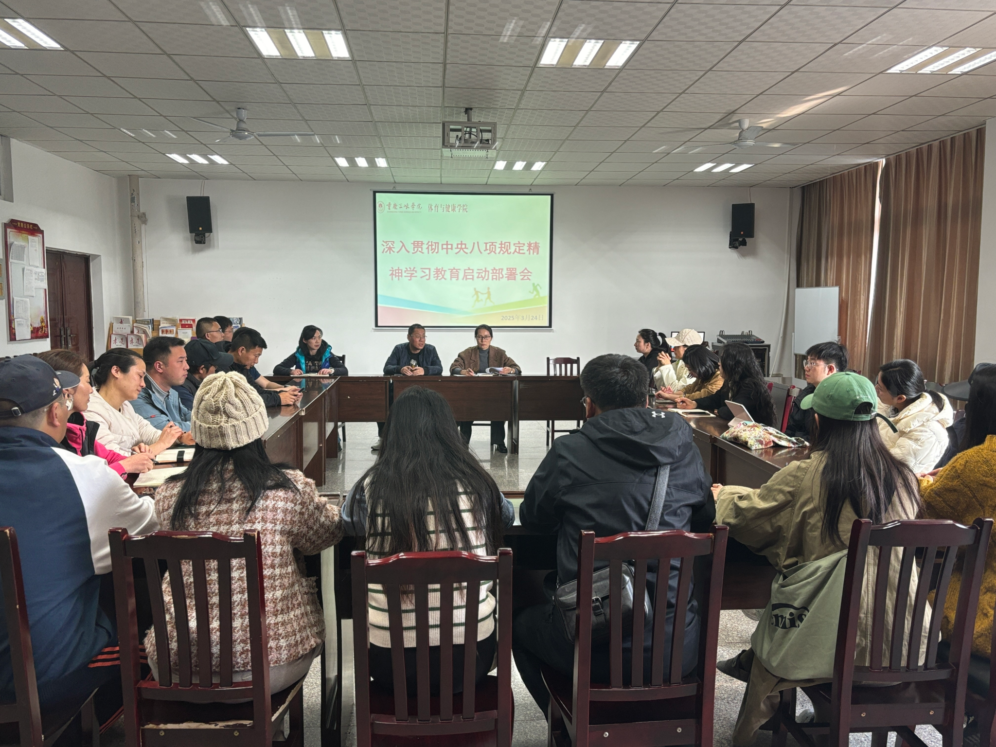 2025年3月24日,根据上级和学校党委的要求,太阳集团tyc122cc党总支召开深入贯彻中央八项规定精神学习教育启动部署会。会议由太阳集团tyc122cc党总支书记冉金鑫主持,学院领导班子、全体党员教师参加。