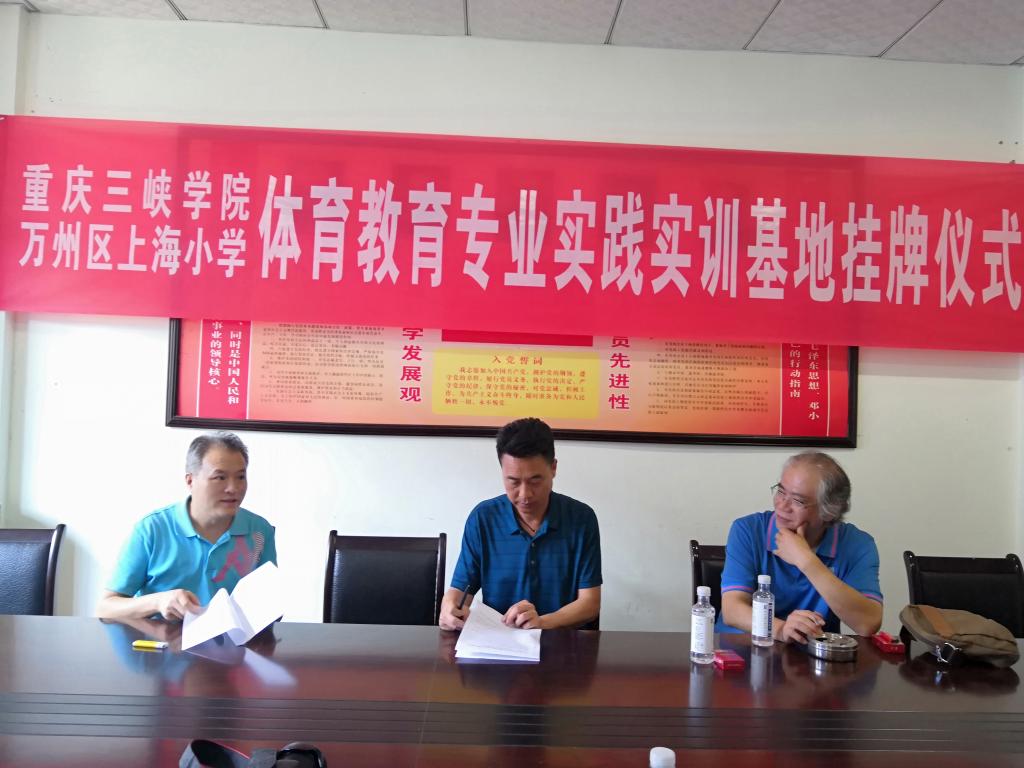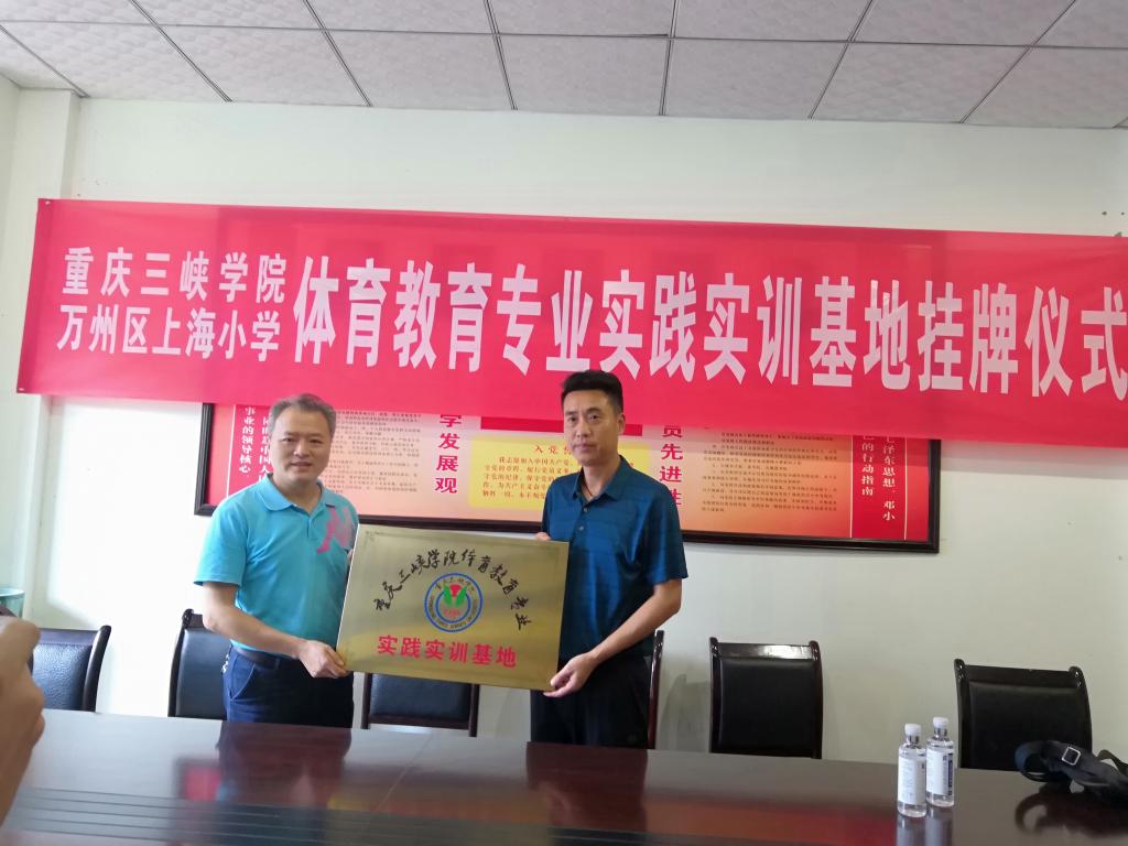 为落实我院人才培养方案,拓展学生实习实践渠道,提高体育教育专业学生实践教学技能,我院与万州区上海小学共建实习基地,于6月13日下午在上海小学举行签约授牌仪式。我院院长向家俊、书记漆勇、竞赛实训中心主任何兴权、学工办副主任胡彩凤,上海小学校长、体育教研室全体老师参加会议。