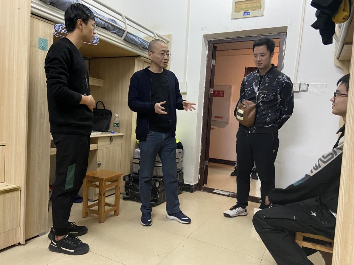 随后,全体学工人员走访了2018-2020级本科生和2020级研究生宿舍。杨书记与学生亲切交流,关心新生步入大学以来的适应情况,强调寝室卫生规范,同研究生探讨了休闲体育的理论知识和实践等。