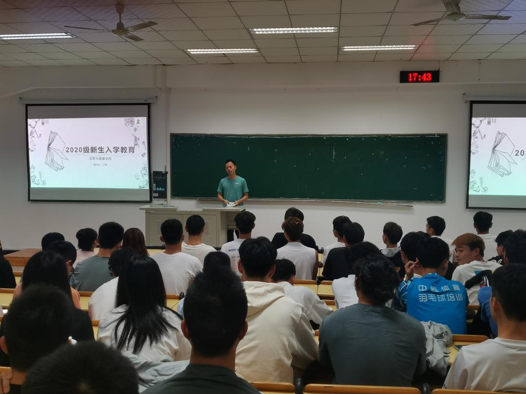 2020年9月25日,太阳集团tyc122cc新生报道结束后的第一天,学院领导、系主任与辅导员纷纷踏入教室,为新生上“开学第一课”。院长向家俊、副院长黄健、教研室主任刘铮以及辅导员陈果在二教104教室与体育教育以及运动人体科学专业的学生见面,开启了学院领导与2020级新生的首场见面会。