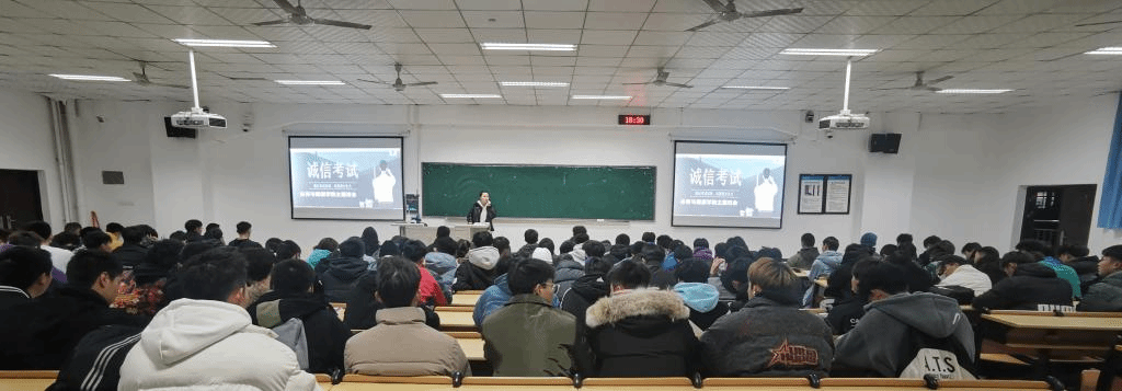 考试的主要目的是验收学生认真学习的成果,而不是一昧的追求成绩,学生必须正视考试,而不是害怕、担心、惶恐,最后选择自欺欺人的方式去面对。临近期末,考试如期而至,为营造风清气正的良好环境,避免考试违纪现象发生,2021年12月19日,我院辅导员们积极组织学生召开了“诚信应考 诚实做人”相关主题班会。班会上,辅导员向学生传达了诚信应考的精神,让学生在今后的学习生活中深刻认识到“诚信“的重要性,并严格要求自己从现在做起,自律自爱、完善自我、文明考试,做一个诚实守信的文明学生。