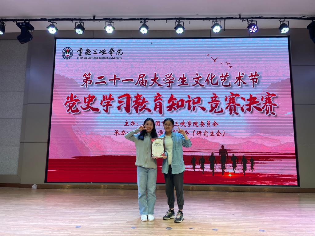 2022年4月,共青团重庆三峡学院委员会和重庆三峡学院委员会共同举办了第二十一届大学生文化艺术节党史学习教育知识竞赛,学院大力宣传,学生全员参与。根据初赛成绩的高低,我院推荐2019级周俐利、黄梦婷两位党员同志参加校级决赛并取得二等奖的优异成绩。