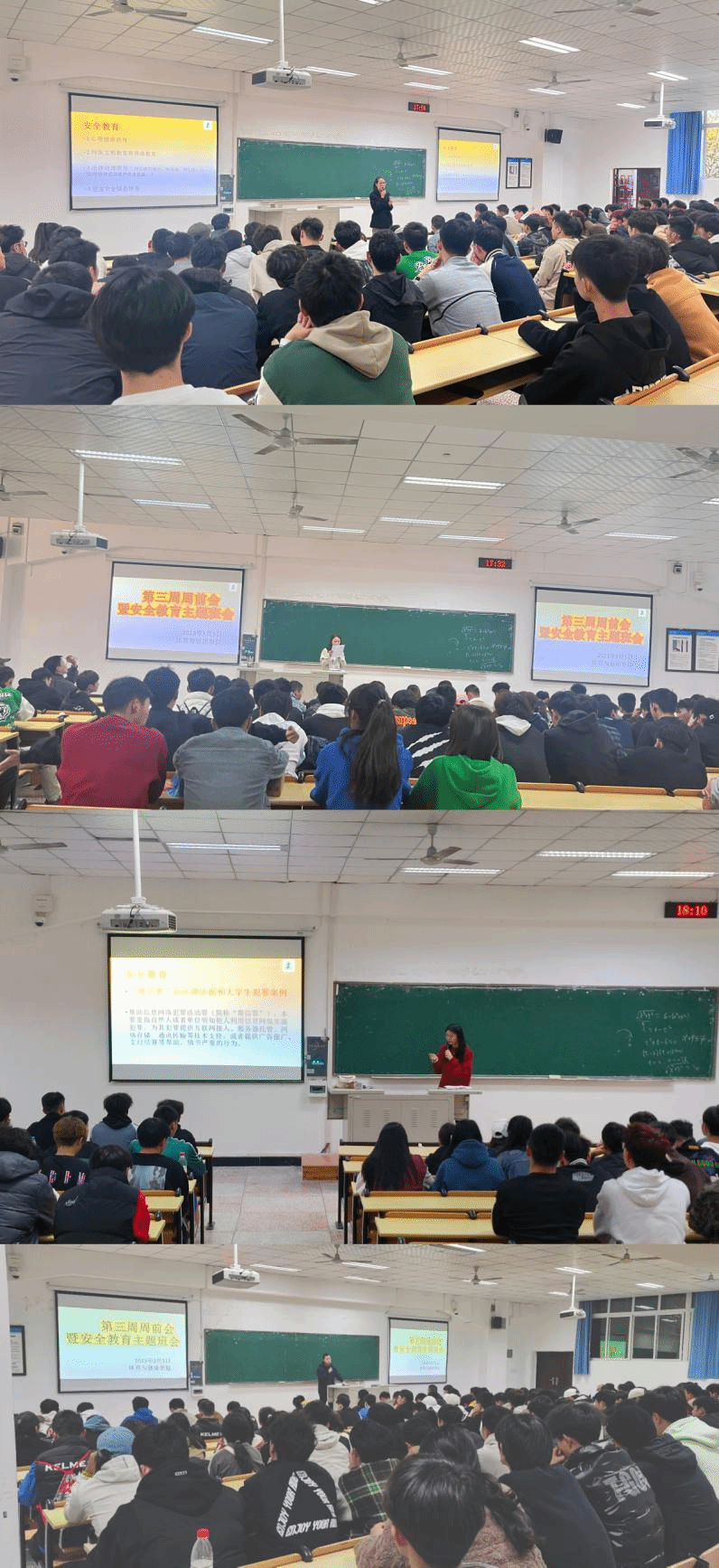 安全教育是学校一项重点工作,如何做好这项工作是关键。为加强学生安全教育引导与管理,进一步促进学生健康成长,太阳集团tyc122cc党总支书记冉金鑫带领学工队伍通过周前会的形式对学生开展安全教育。