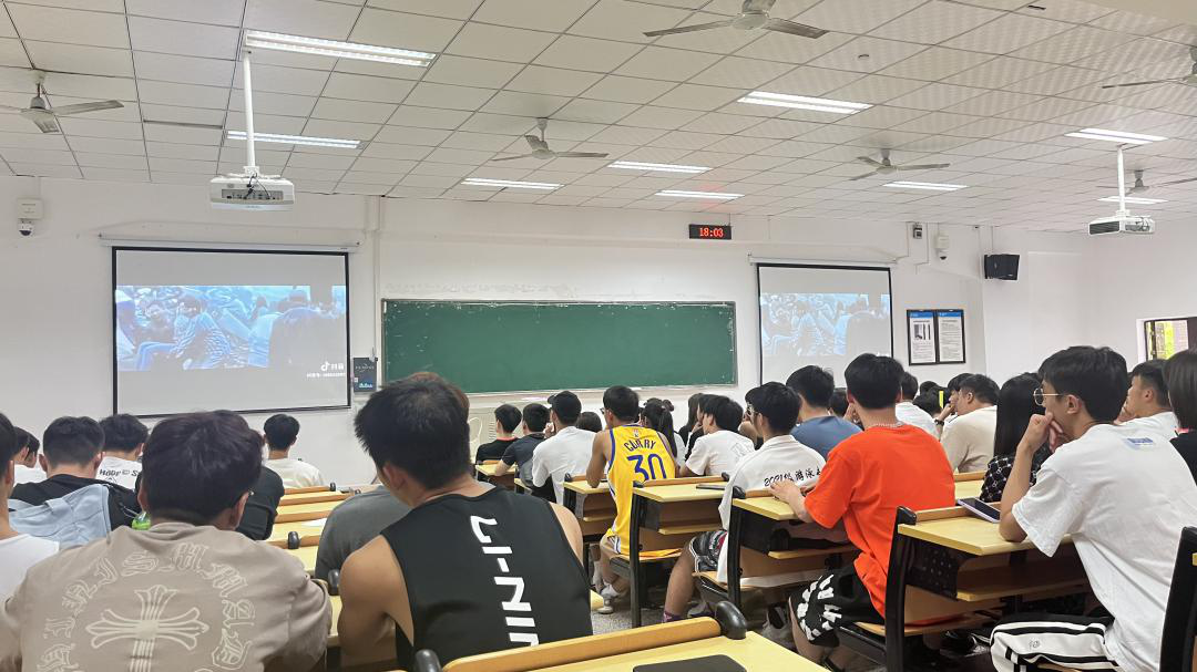 (同学们认真观看“防灾减灾”宣传视频)