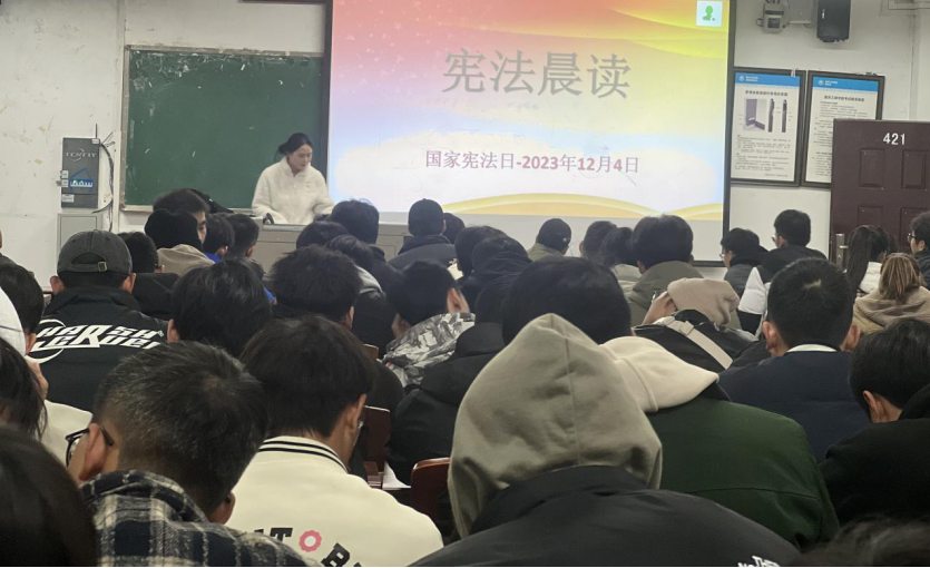 2023年12月4日是中华人民共和国宪法日,为学习宣传党的二十大精神,建立学习宣传宪法和预防青少年犯罪的相关法律法规、强化平安校园建设的长效机制,帮助学生获取法律素养、法律知识和意识,从而建立宪法意识、法治观念和法律信仰,进一步在广大青年学生中普及宪法知识、弘扬宪法精神、树立宪法权威,引导学生自觉成为宪法的忠实崇尚者、自觉遵守者、坚定捍卫者,我院通过周前会、主题教育班会、室内结合室外开展宪法晨读活动等各种形式的宣传教育,针对宪法和法律知识对同学们进行深入浅出的普及,让他们了解自身的法律权利、义务、法律的基本程序和法律的规则,提高参与社会治理和法律问题处理的能力。