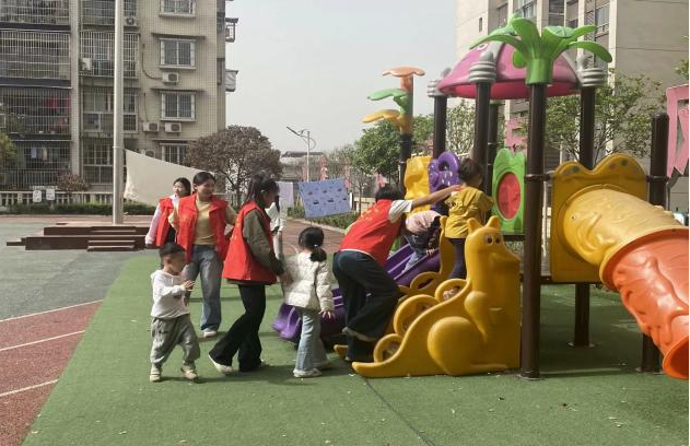 志愿者们来到儿童活动中心,带小朋友们玩老鹰捉小鸡的趣味游戏,教他们折纸飞机,和他们一起清理垃圾,给他们讲授环保知识。孩子们积极响应,他们的小手虽然稚嫩,但行动却十分认真,往日的羞涩在欢声笑语中逐渐消散,取而代之的是自信和快乐的笑容,整个活动中心充满了温暖与活力。