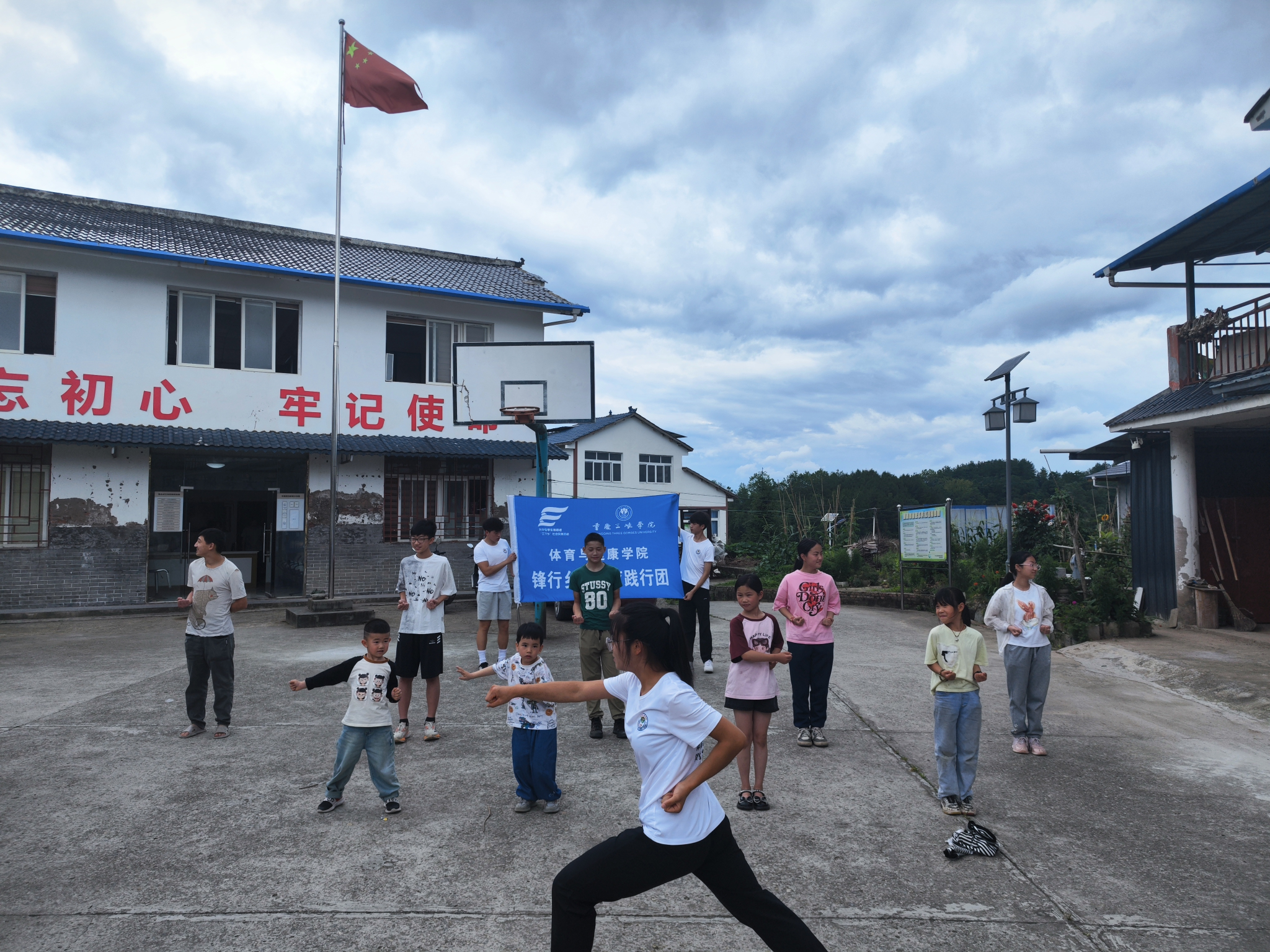 七月暑气正盛,体育与健康学院“三下乡”实践团奔赴乡村,在溪畔塘边与村小操场,为当地孩子送上了一份别开生面的“安全+健康”暑期礼包——将关乎生命的防溺水知识与承载传统的五步拳教学,播撒进乡村孩子们的心田。