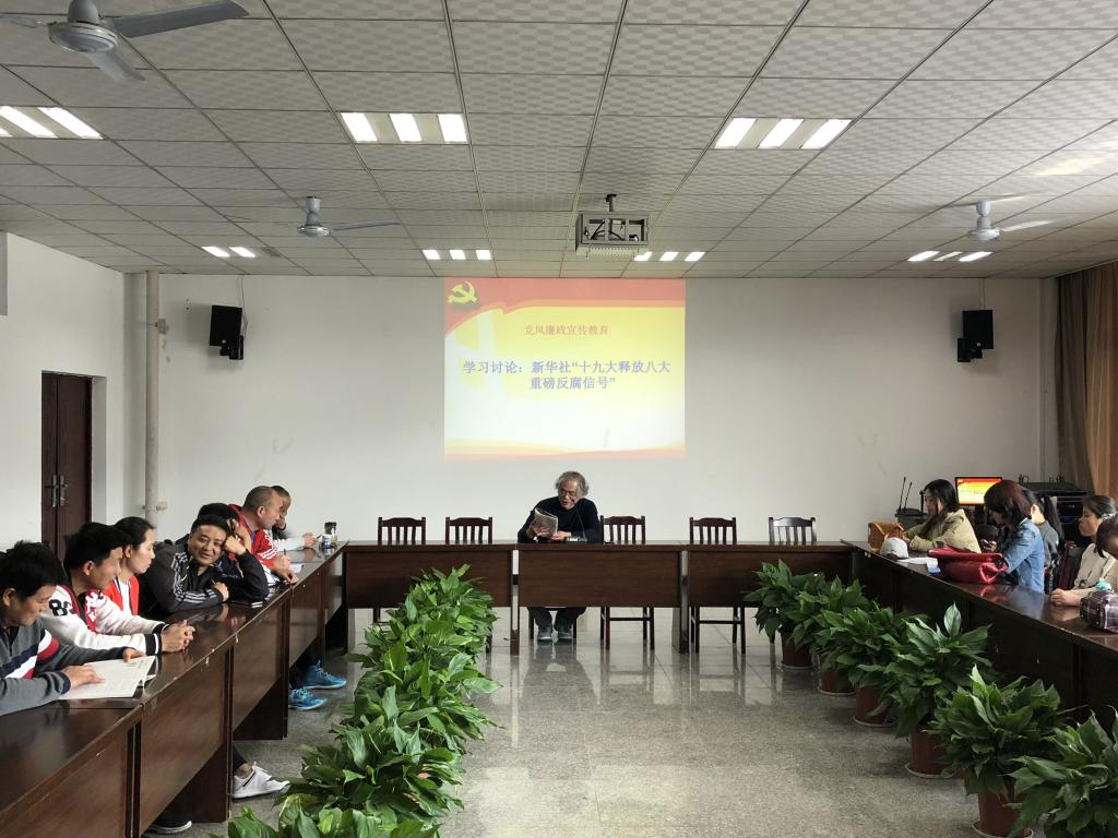 2018年3月22日下午我院开展党风廉政宣传教育活动,组织全体党员学习讨论:新华社“十九大释放八大重磅反腐信号”一文。漆勇书记强调:要响应十九大号召,不断深化党风廉政建设和反腐败工作,形成教育常态化,推动全面从严治党向纵深发展。