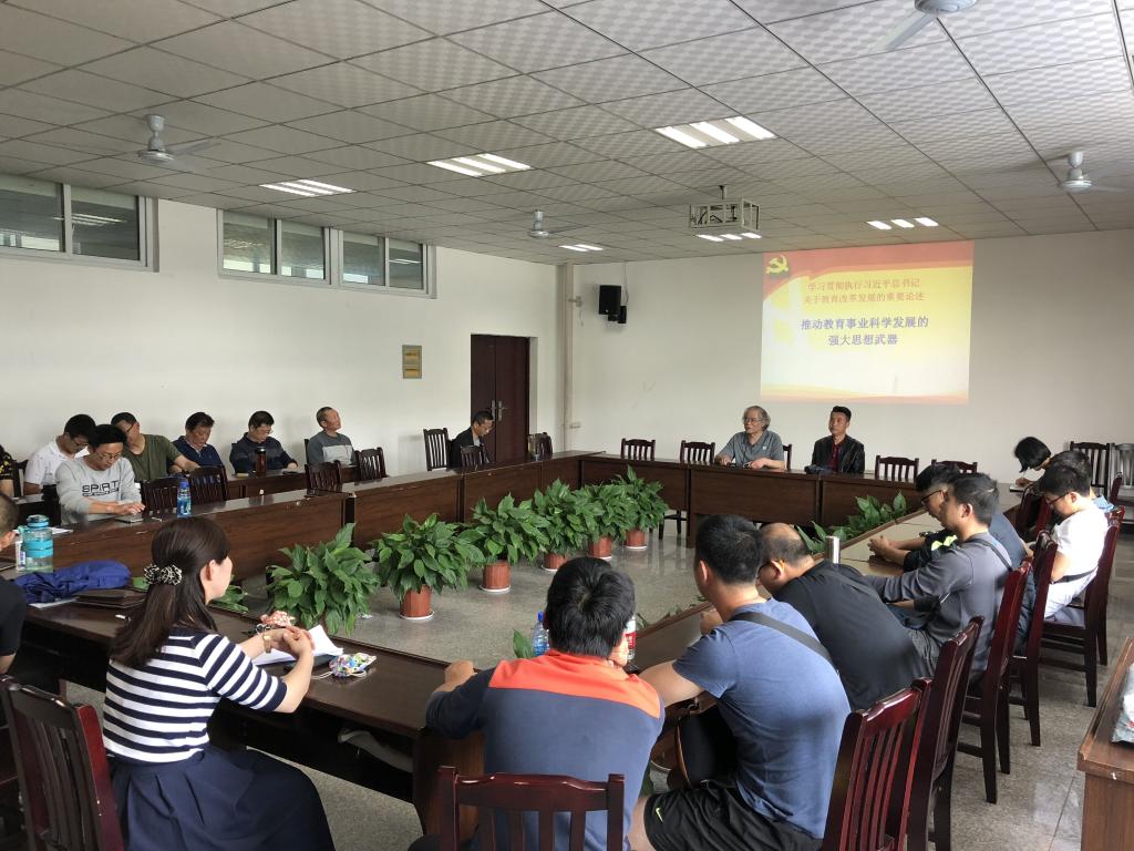 2018年4月19日,在体育综合楼四楼会议室,我院开展学习贯彻执行习近平关于教育改革发展的重要论述活动,由漆勇书记组织全体教职工学习讨论“推动教育事业科学发展的强大思想武器”(中国教育科学研究院)一文。