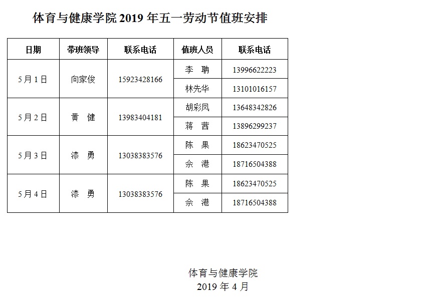 太阳集团tyc122cc2019年五一劳动节值班安排
